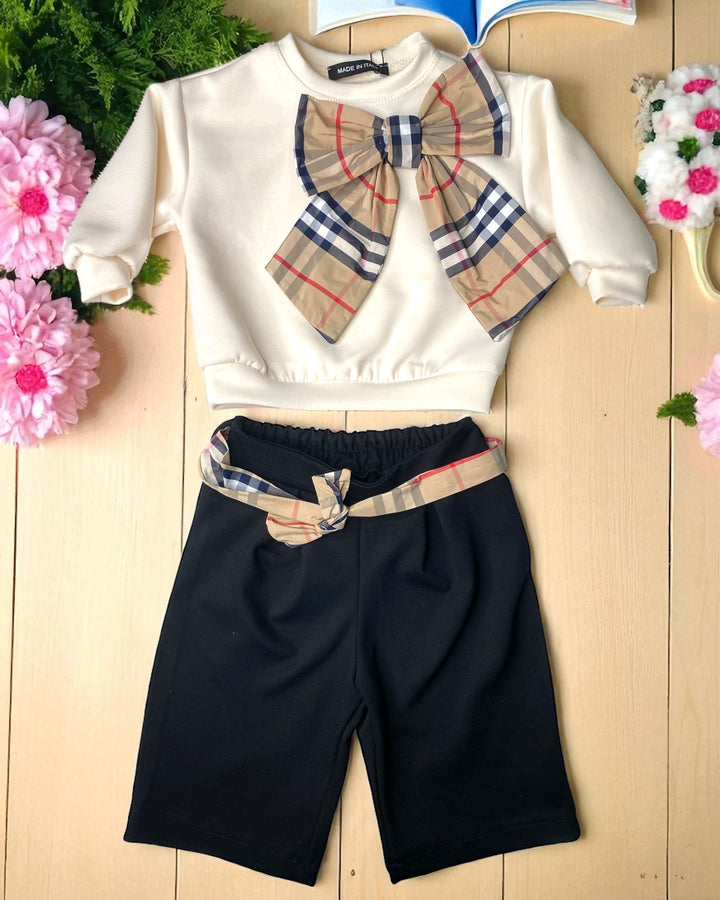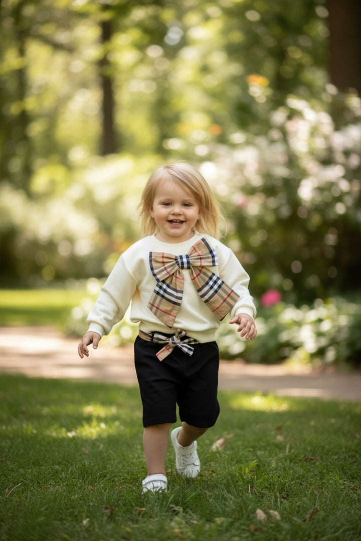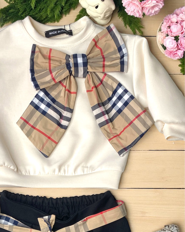 Felpa girocollo con fioccone a quadri